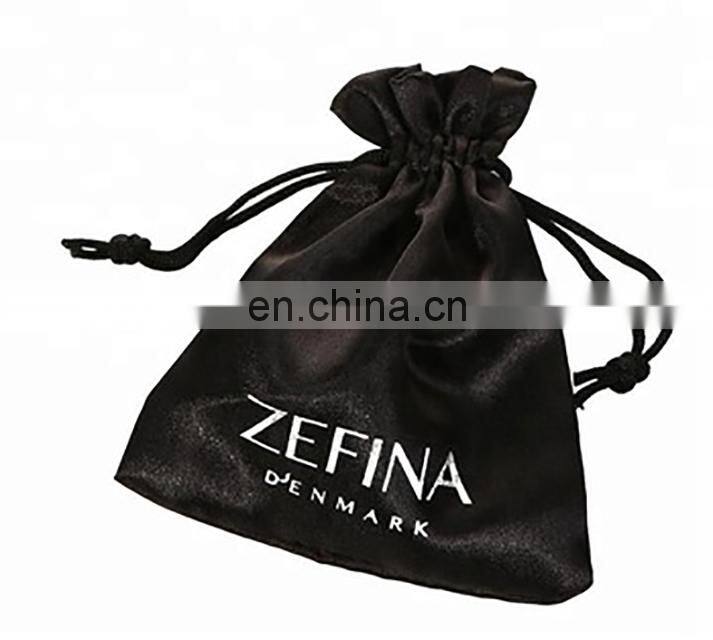 Wholesale Drawstring Gift Silk Satin Pouch Hair Extension Packaging Black Satin Bag With Customized Logo