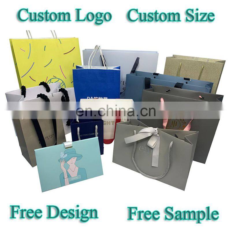 Custom Logo Printing Luxury Fashion Shopping Retail Gift Paper Bags With Ribbon Handle