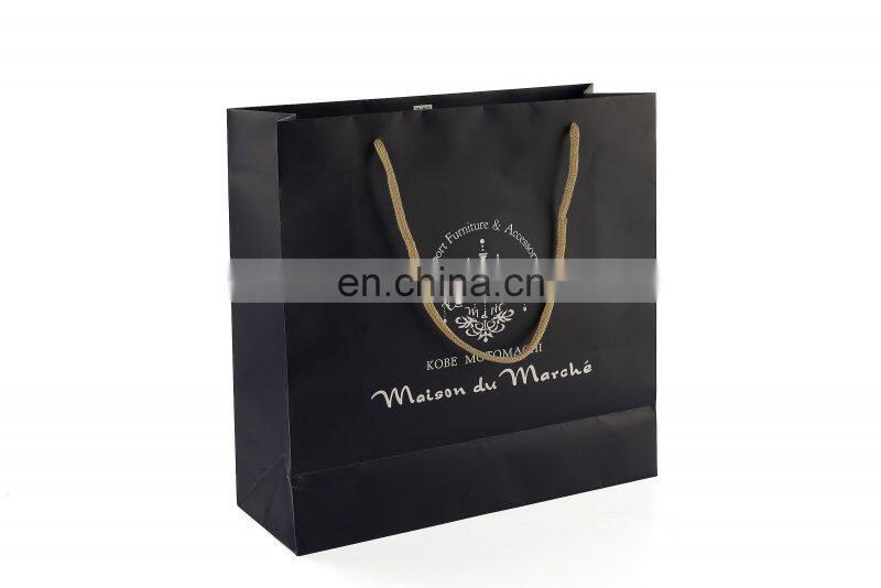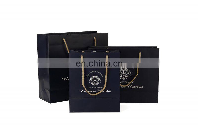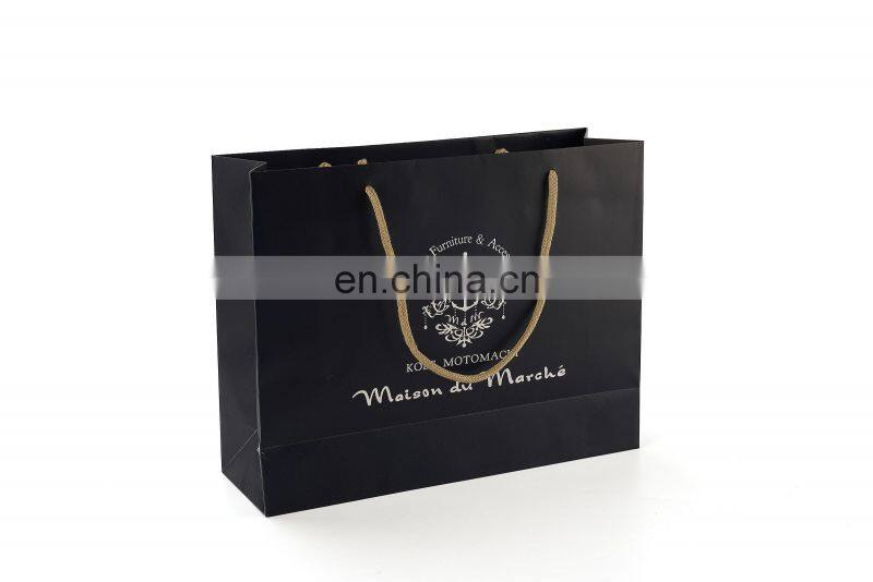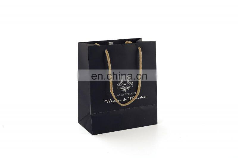 New Gold Logo Hot Foiled Stamping Black Matt Kraft Paper Bag With Cotton Rope Handles