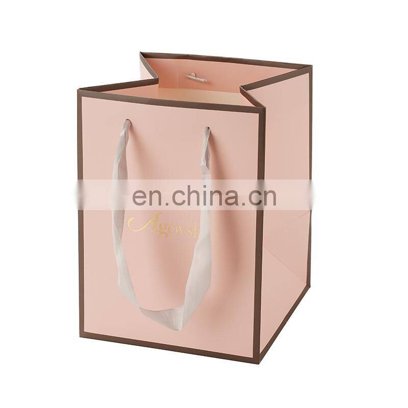 Paper Bag With Ribbon Handle Luxury Shopping Gift Pink Paper Bag