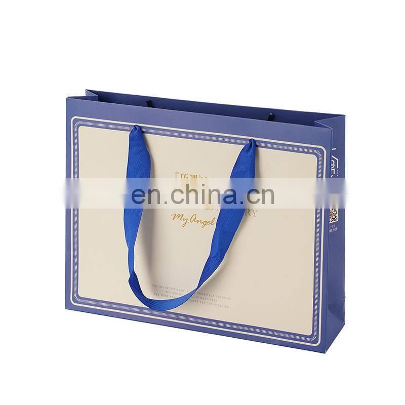Custom Design Ribbon Handle Luxury Clothing Shopping Packaging Art Paper Bag For Clothing