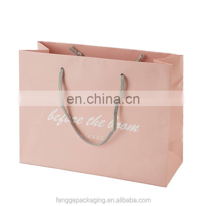 Custom Luxury Design Logo Pink Shopping Mall Carrier Shopping Paper Gift Bags With Handles Square Paper Bags