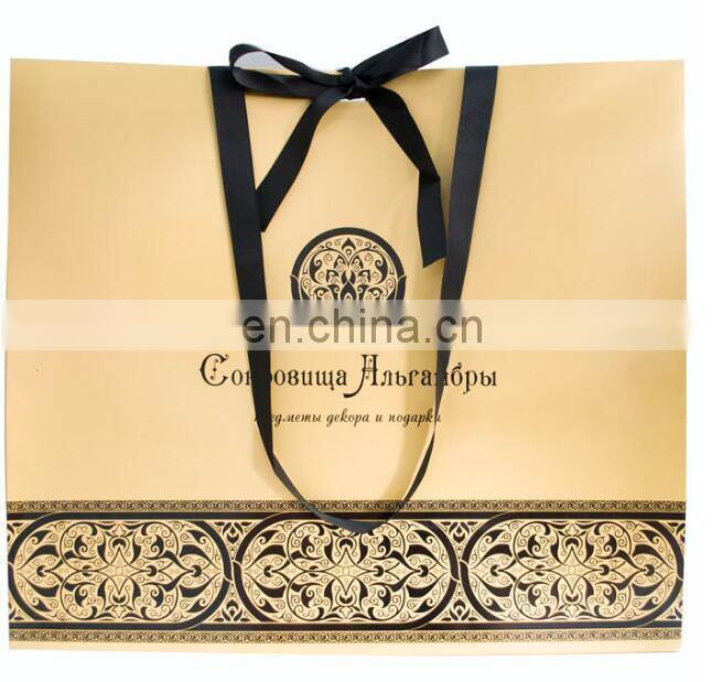 Custom Design Ribbon Handle Luxury Clothing Shopping Packaging Art Paper Bag For Clothing