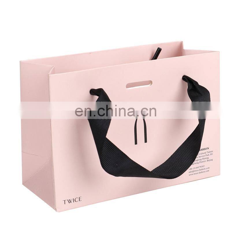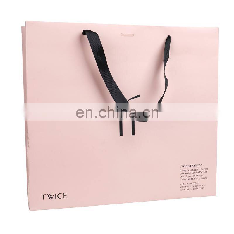 Paper Bag With Ribbon Handle Luxury Shopping Gift Pink Paper Bag