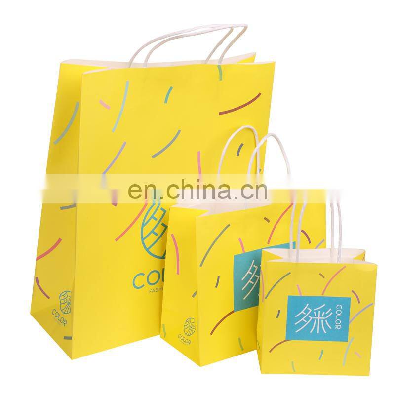 Wholesale Yellow Shopping Printed Paper Gift Custom Packaging Yellow Paper Bags