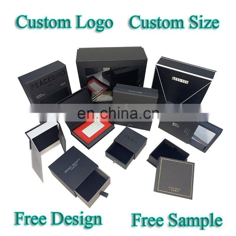 Wholesale Custom Wedding Sliding Black Paper Cardboard Gift Packaging Printed Custom Logo Bracelet Drawer Jewelry Box