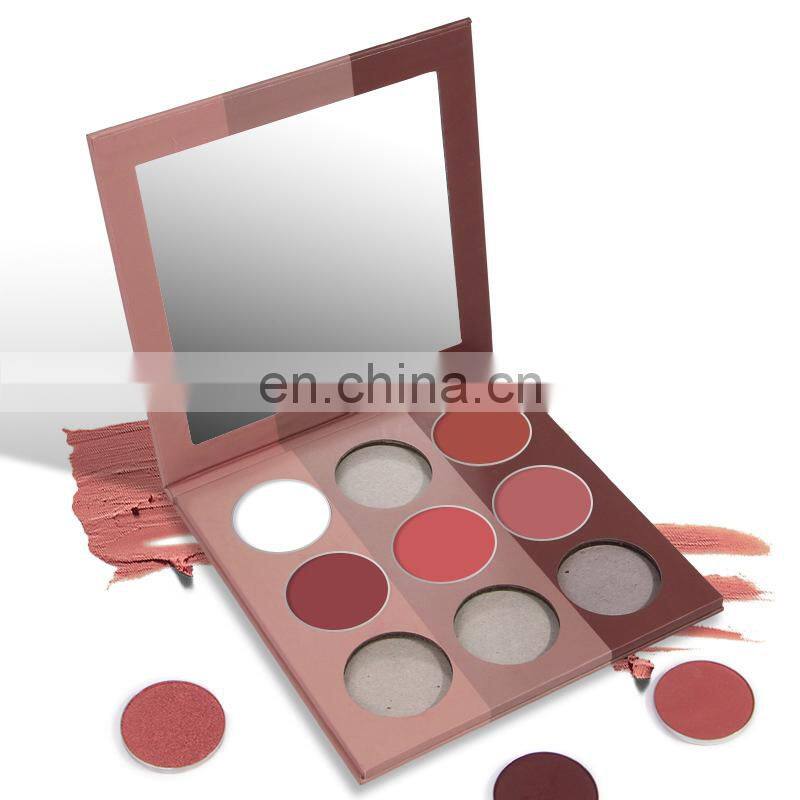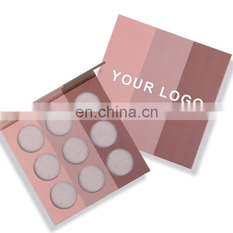 Oem Cardboard 9 Pans Eyeshadow Palette High Pigmented Makeup Blush Pan Magnetic Packaging
