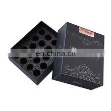 Black Cosmetic Luxury Packaging for Essential Oil Ribbon Closure Sample Fragrance Box With EVA Bottom