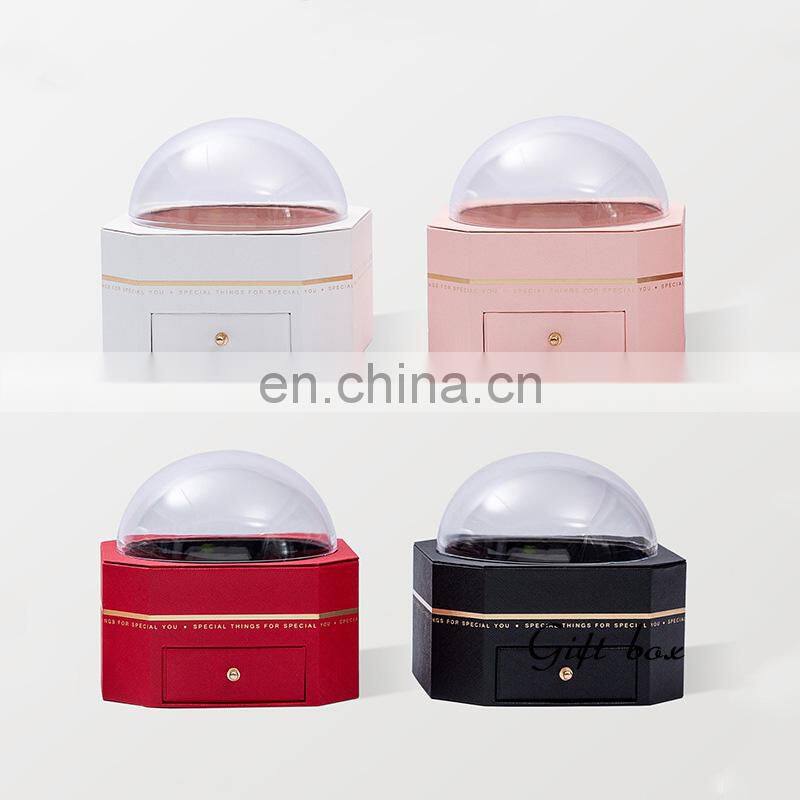 Custom Luxury Paper Gift Set Box Packaging for Artificial Enchanted Preserved Real Rose Flowers Led Lights in Glass