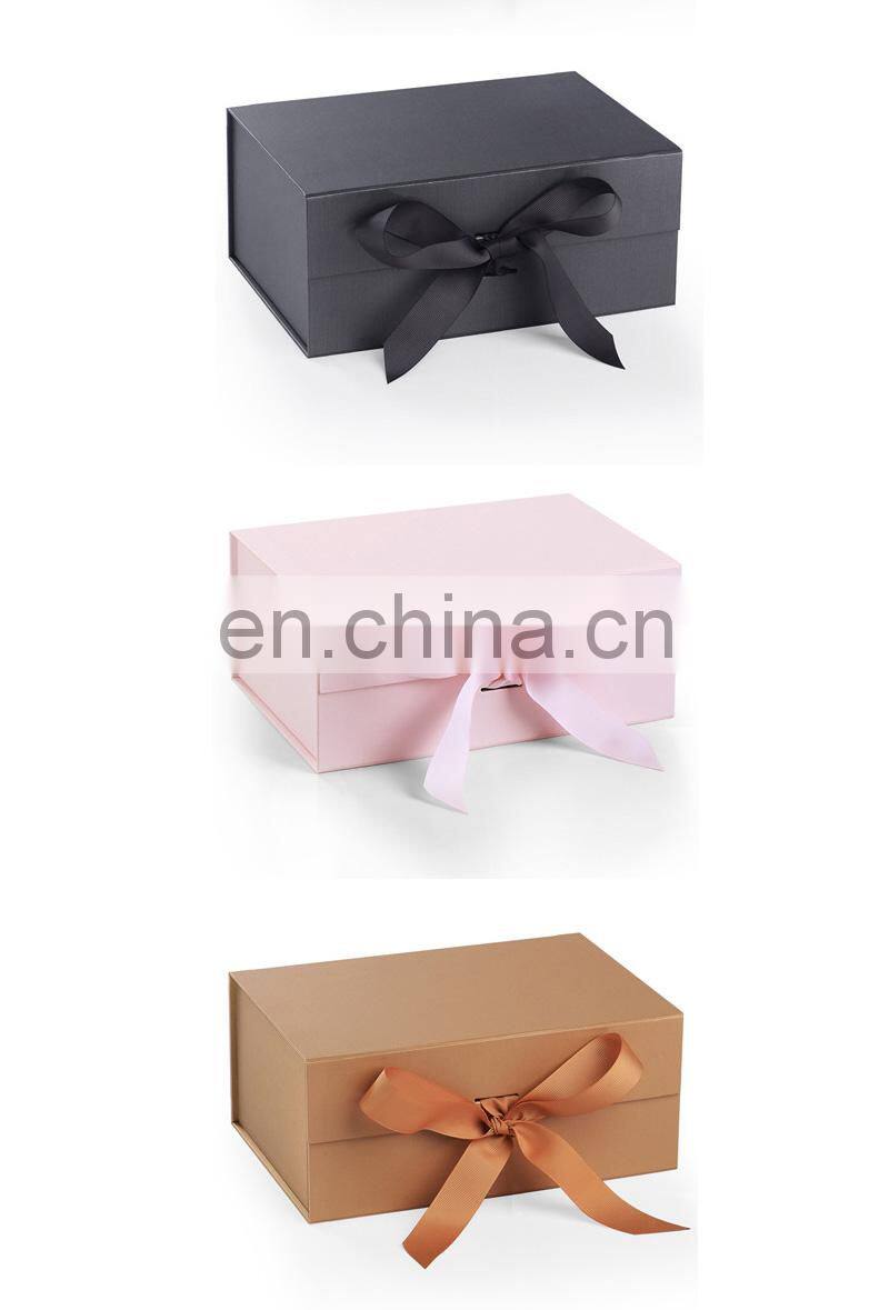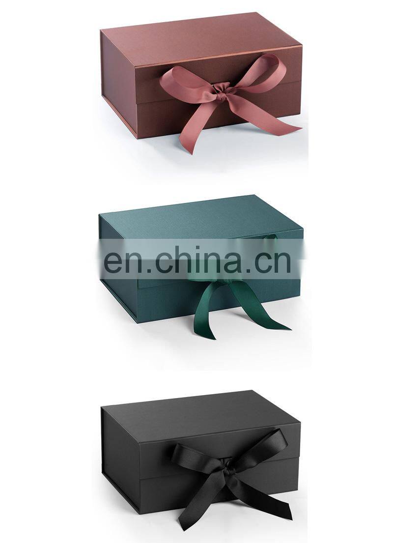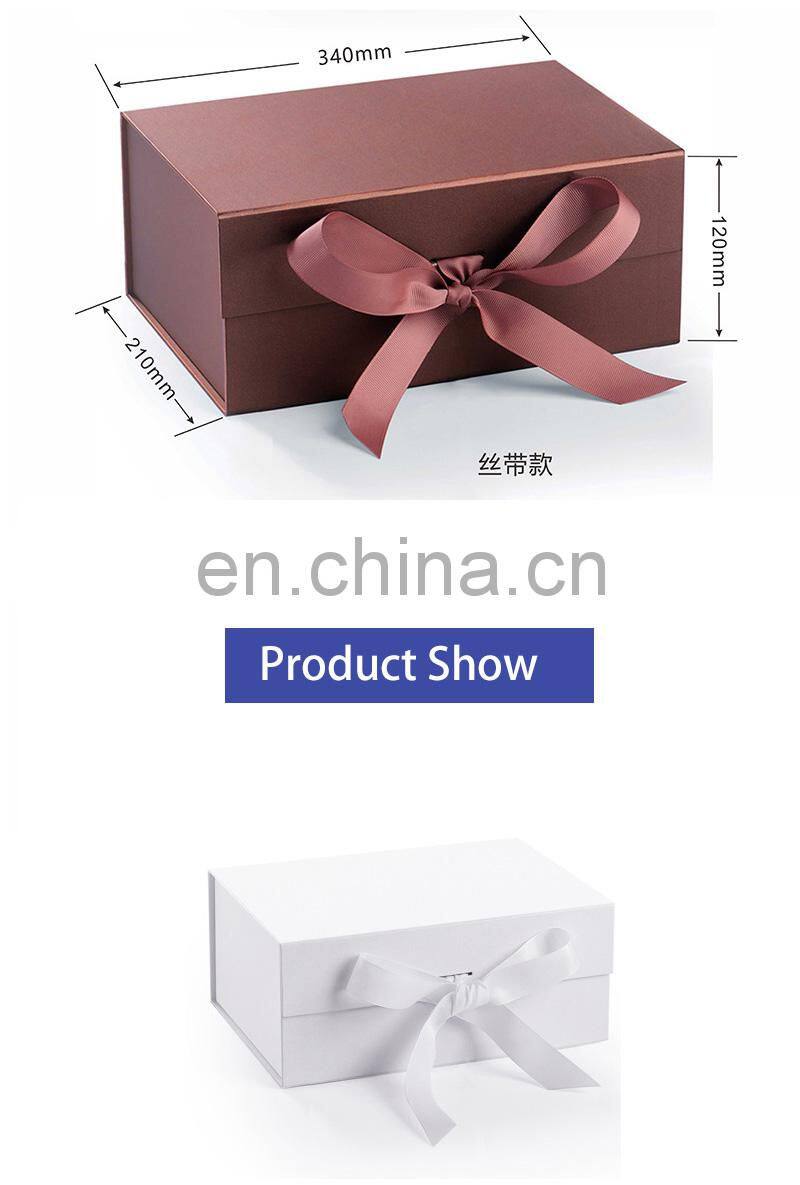Custom Printed Rigid High End Foldable Magnetic Lock Luxury Gift Box With Ribbon Closure