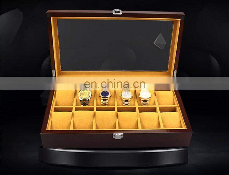 Home > Products > Watch box > OEM High End Top Glasses 12 Digits Wooden Watch Display Box Storage Watch Wood