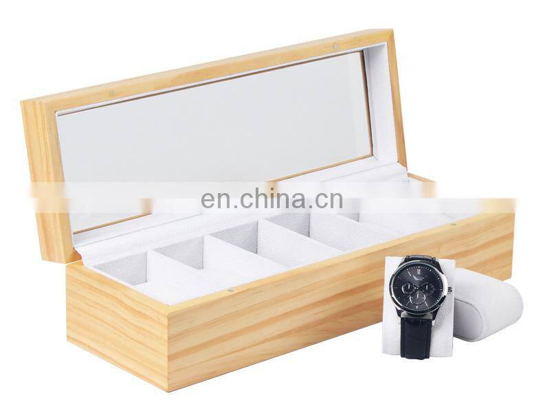 Luxury Custom Logo 6 Slot Pine Gift Display Oem Watches Cases Band Watch Organizer Box