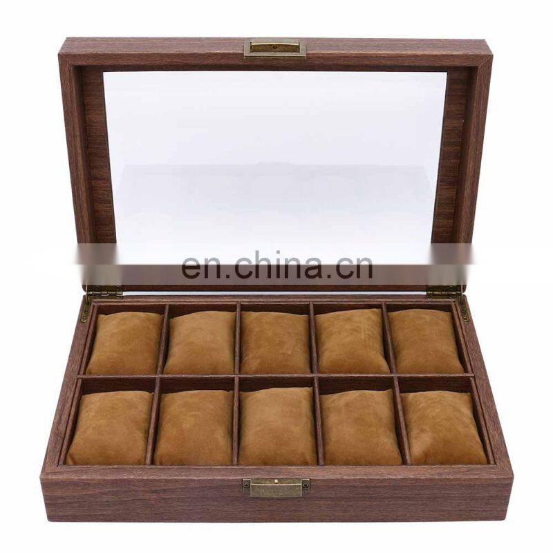 OEM High End Top Glasses 10 Digits Wooden Watch Display Box Storage Watch Organizer