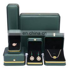 Wholesale Custom Plastic Wrapped With Green PU Leather Jewelry Case for Ring Earrings Necklace Bangle and Bracelet Packing Box