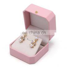 Luxury Unique Design Octagonal Shape Pink Pu Leather Ring Pendant Earrings Box