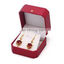 Custom Logo Octagonal Shape Red Color Pu Leather Ring Pendant Earrings Box