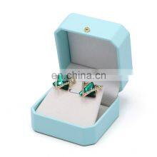 Wholesale Custom Logo Light Blue Pu Leather Jewelry Packaging Ring Earring Pendant Box