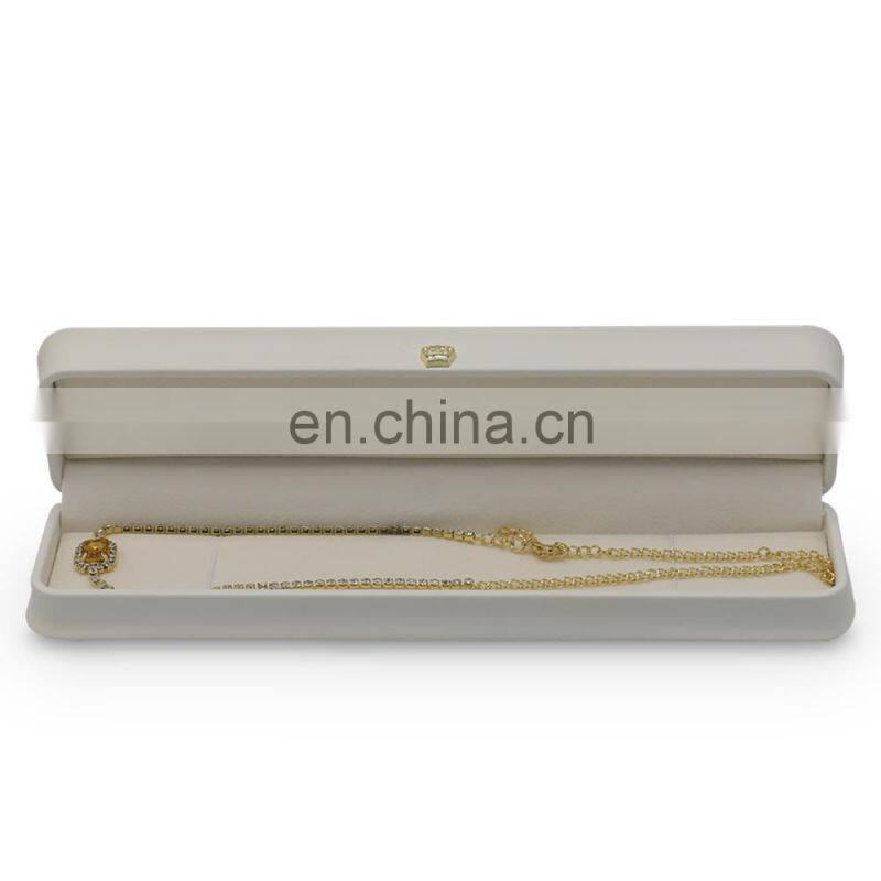 Wholesale White Color Leather Convex Edge Jewelry Box Long Chain Box