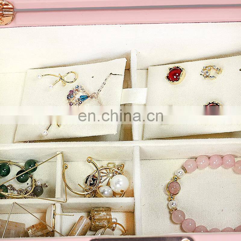 European Style Portable Flannelette Birthday Gift Earring Necklace Storage Jewelry Box With Mirror