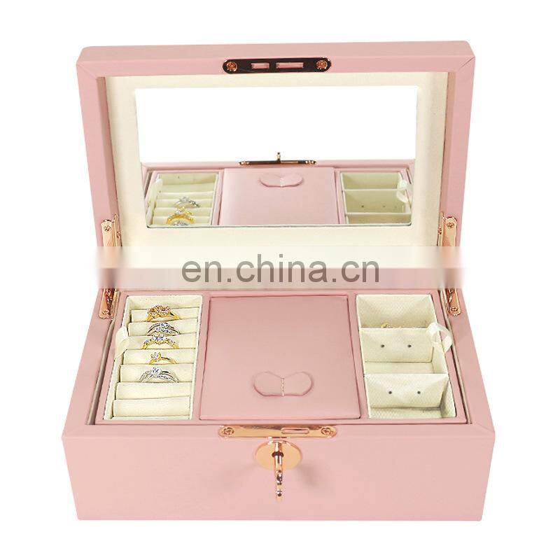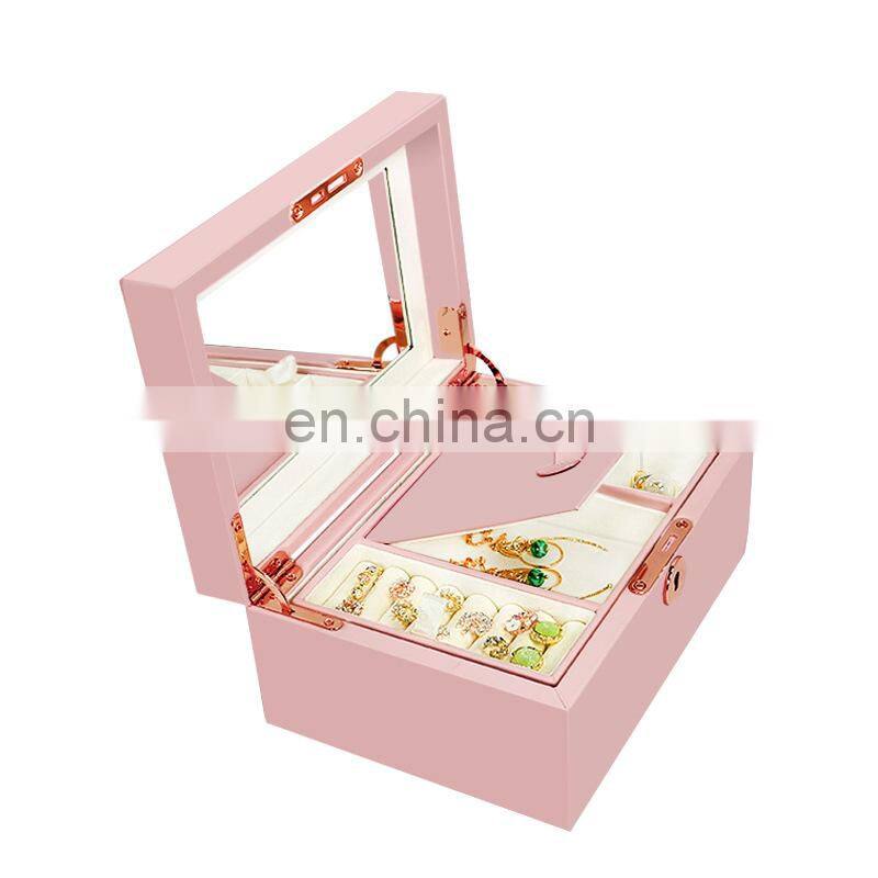 New Fashion Personality PU Double Layer Jewelry Storage Box With Mirror