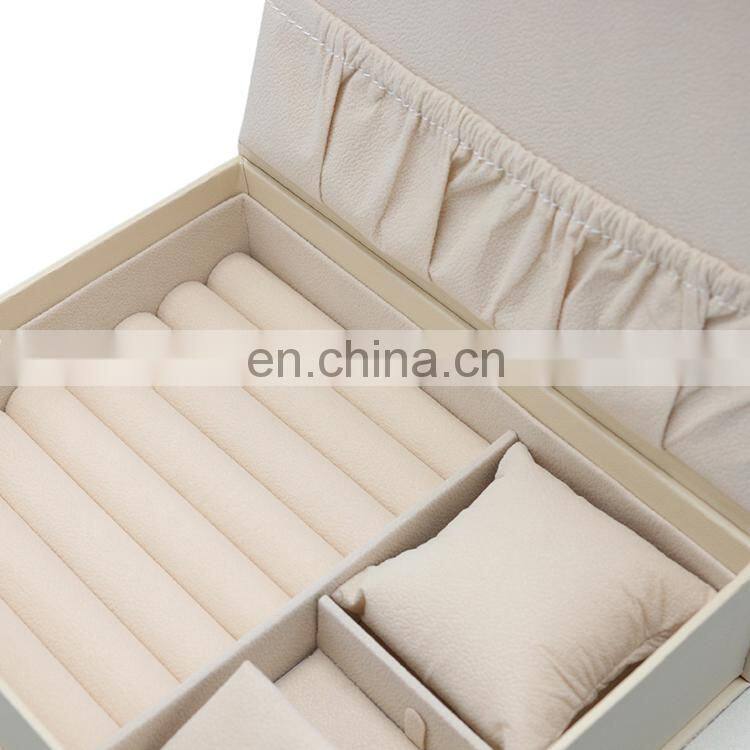 Custom Large Capacity Cosmetics Box Portable White Color PU Leather Jewelry Storage Box