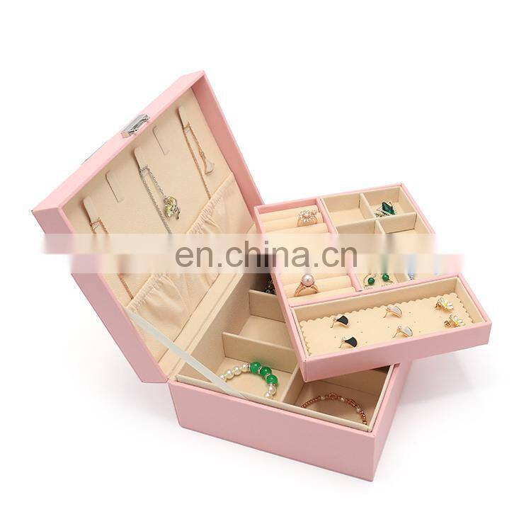 Fashion Classic Luxury Wholesale Custom Jewelry Box Large Capacity Cosmetics Box Portable PU Jewelry Storage Box