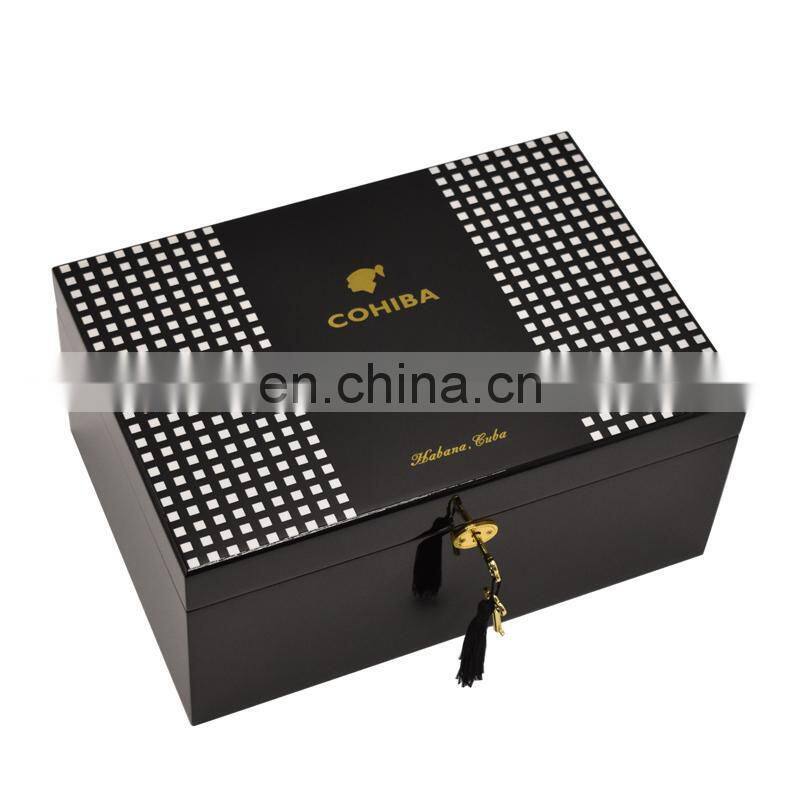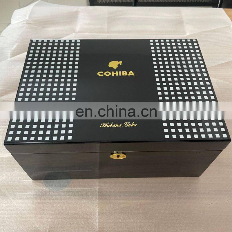 Luxury Wood Cigar Box High Glossy Solid Cedar Cigar Box Packaging With Lock