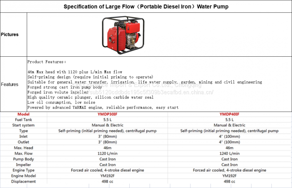 Hot Sale for Industrial and Agricultural Use Large Flow(Portable Diesel Iron)Water Pump With Electric Starter, Ce Euro V, EPA