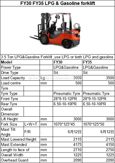 3.5 Ton LPG&Gasoline Forklift ,use LPG or both LPG and gasoline as the power.LPG & Gasoline combustion fully, it`s more clean than normal diesel power forklift,and can work longer than lpg Forklift.