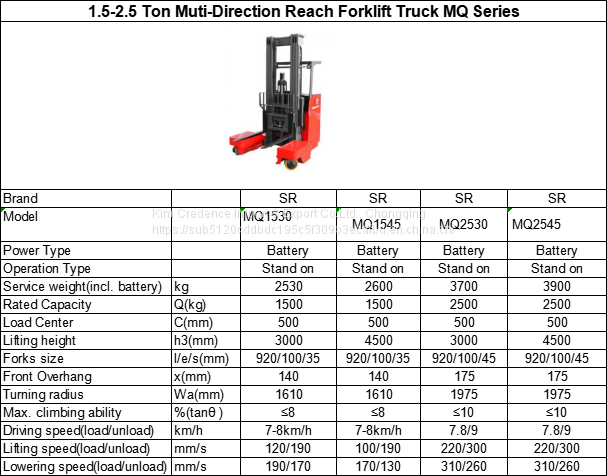 1.5-2.5 Ton Muti-Direction Reach Forklift Truck MQ Series Truck With Full-AC Motor