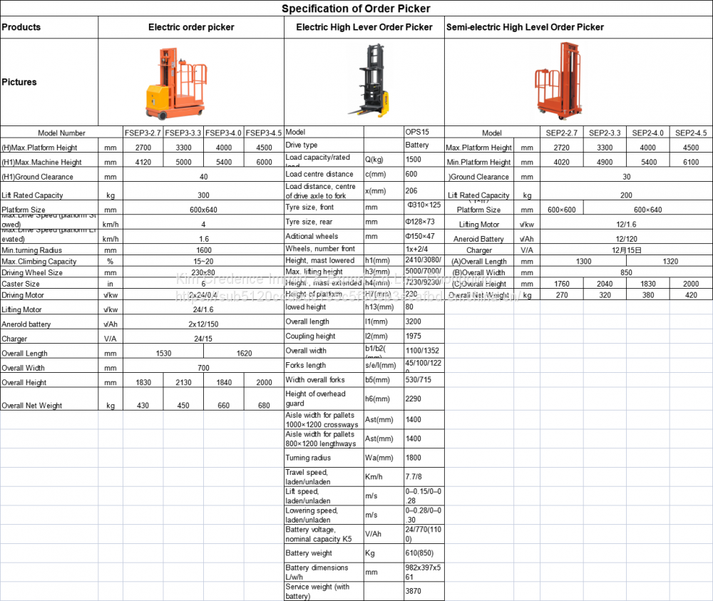 Max lift height: 4500mm, usualy used in warehouse, library, supermarket rack etc;