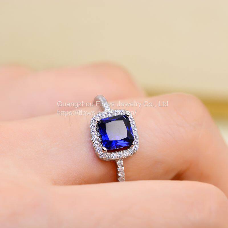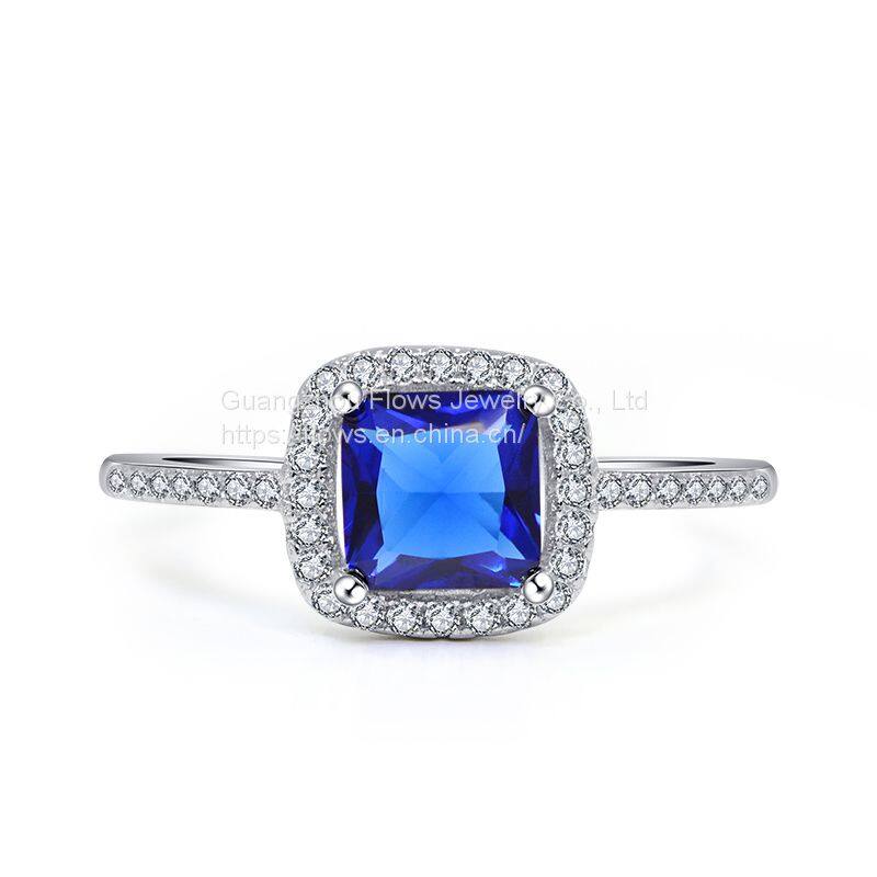 The Platinum Gold Plated 925 Sterling Silver Jewelry Set Rings Inlay Square SapphireNegotiableMOQ: 12 Pieces