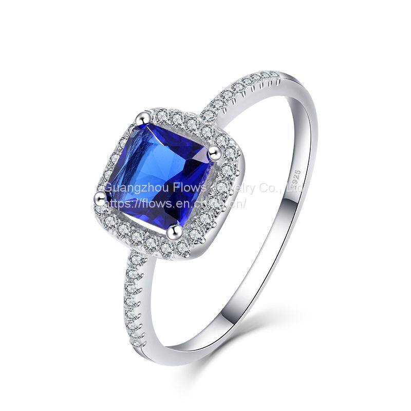 925 Sterling Silver Square Sapphire Zircon Rings Women's Zircon Rings
