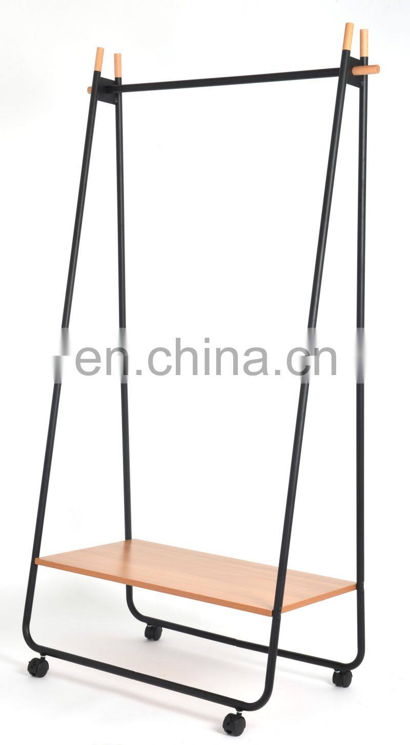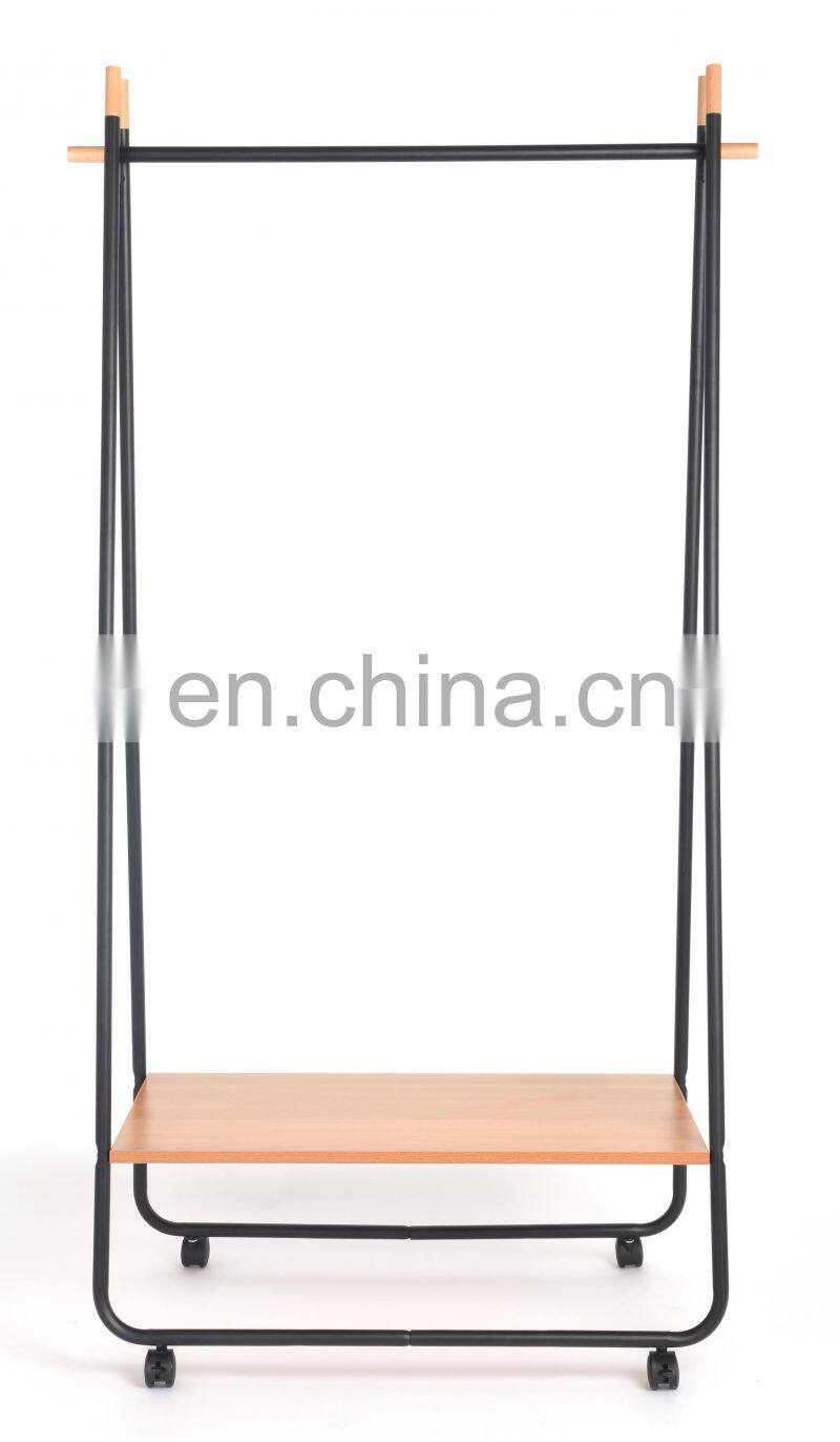 2 Tiers Commercial Wholesale Carbon Steel Coat Rack Hanger Shelf Garment Display Clothes Hanging Clothing Rack With Wheels