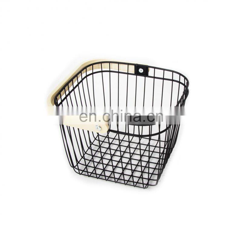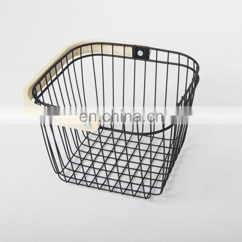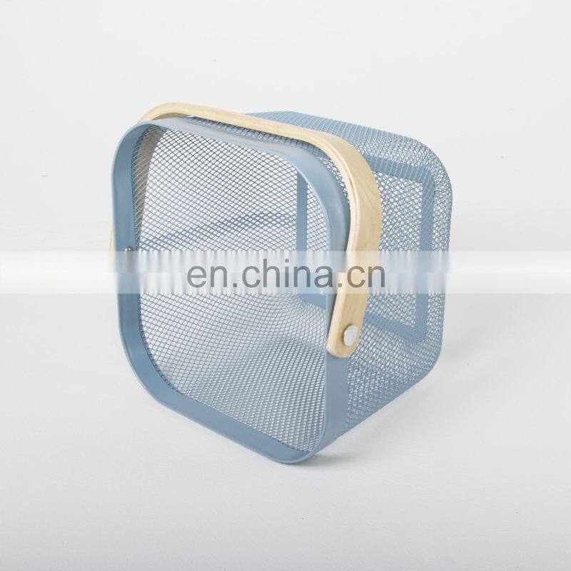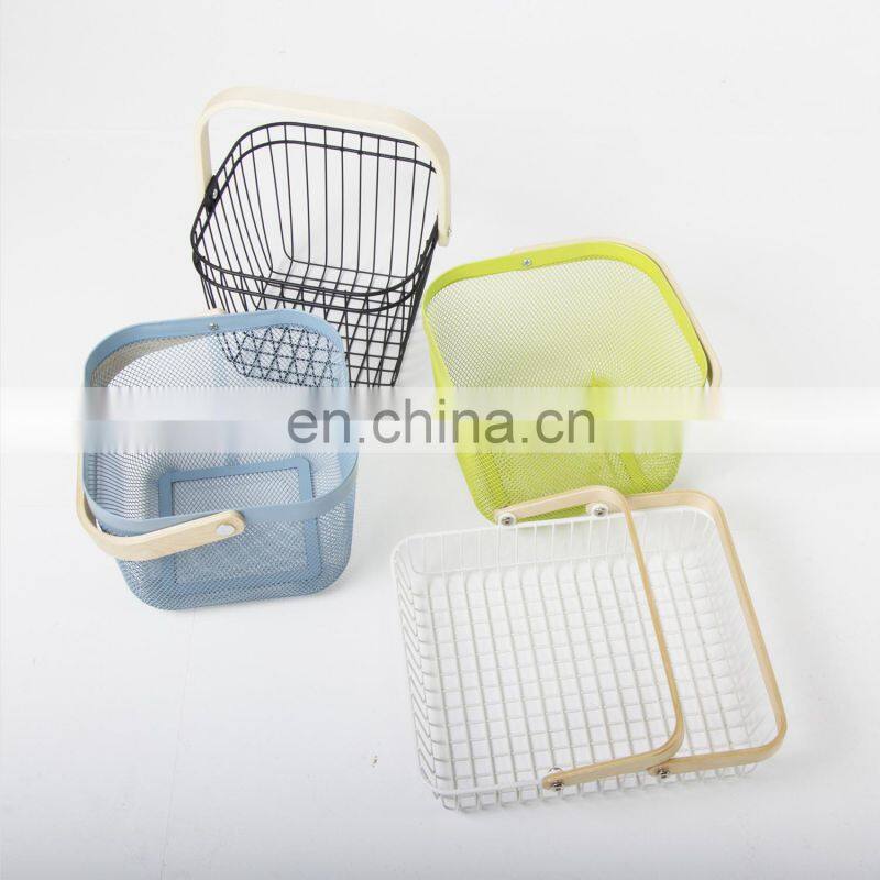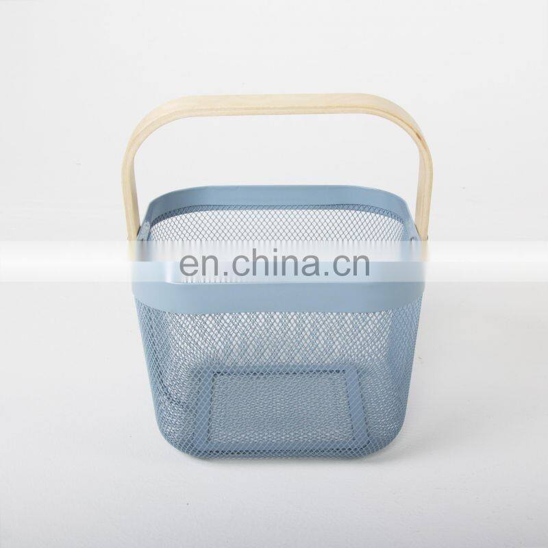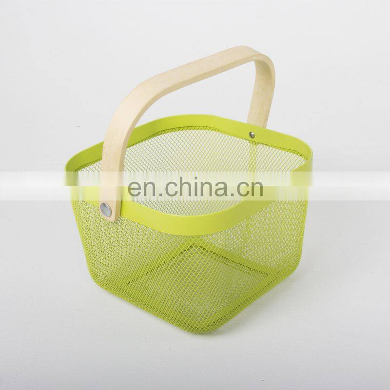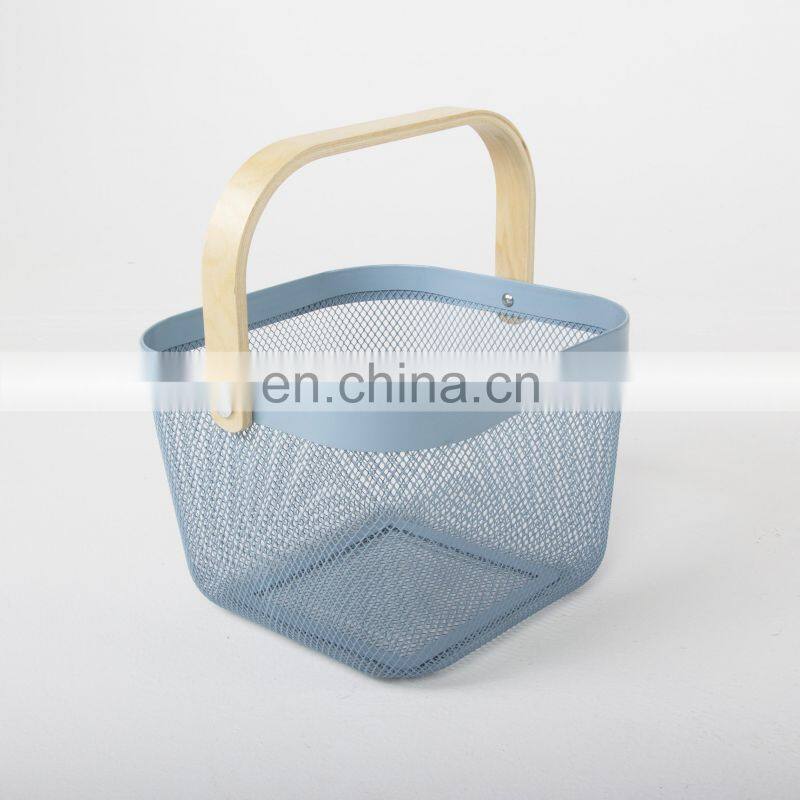 Kitchen Bath Toy Organizer Metal Wire Mesh Fruit Storage Basket With Wooden Handle
