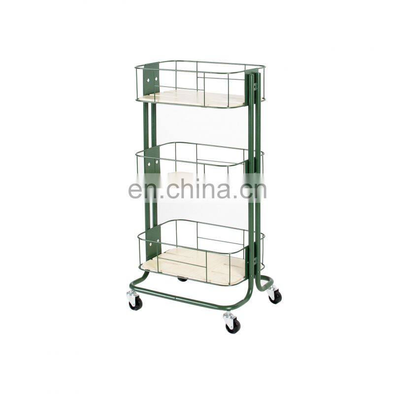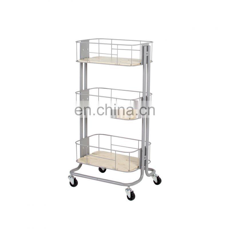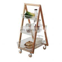 Cheap And High Quality Movable Kitchen Trolley Basket Trolley Rack Kitchen