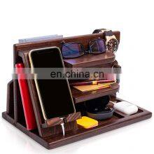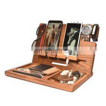Wood Docking Station Tray Phone Watch Holder Men Charging Accessory Stand Key Holder Organizer Tablet Storage