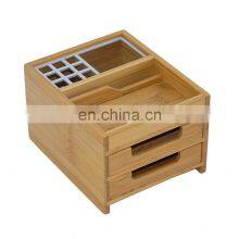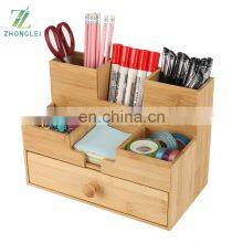 Bamboo Promotional Office Decorative Desktop Pencil Pen Holder With Drawer