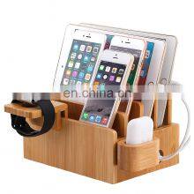 Bamboo Charger Dock Stand Multi Device Charging Station Organizer Holder for Smartphone Cellphone Mobile Phone