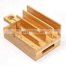 Wholesale Bamboo Charging Station Dock Large Capacity Desktop Organizer for Cellphone Smart Watch Tablet