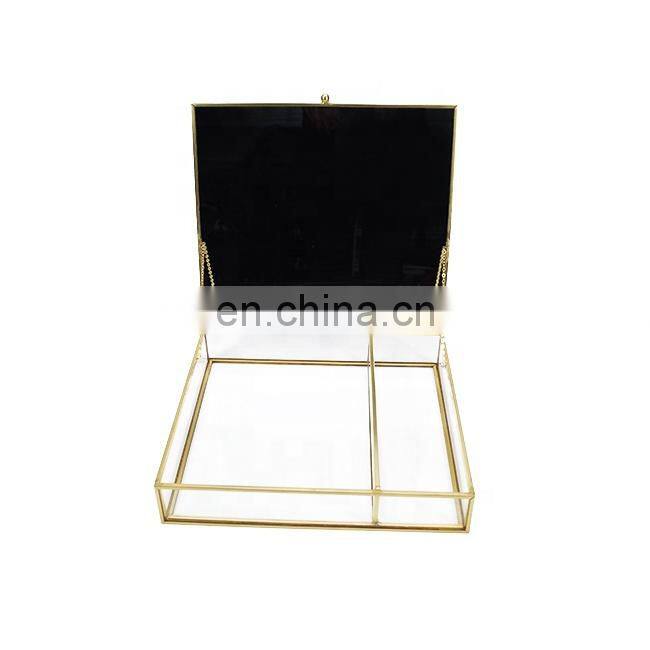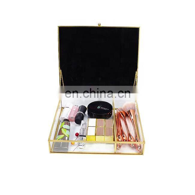 Display Cosmetic Sets Counter Organizer Glass Case Brass Frame Jewelry Box With Mirror