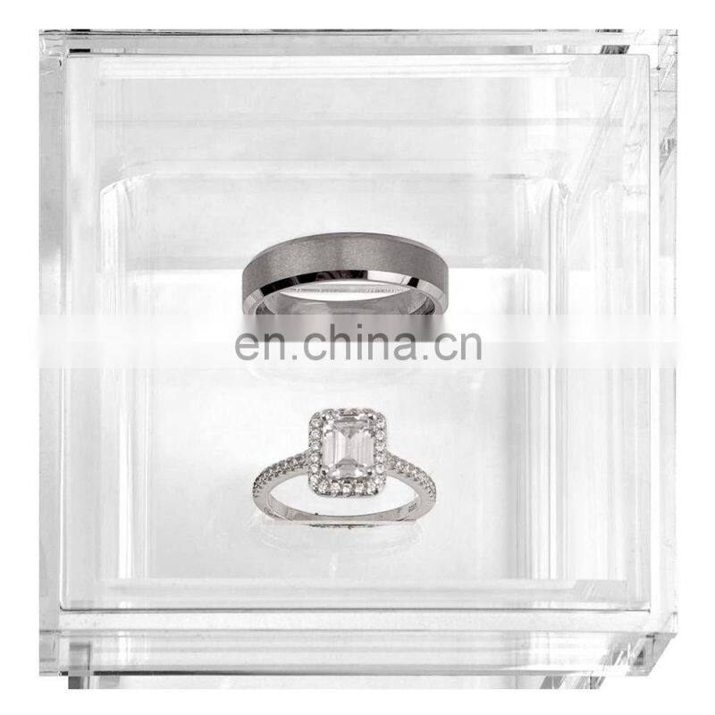 Clear Acrylic 2 PC Wedding Ring Box With 2 Slots Ring Holder Gift Box for Weddings