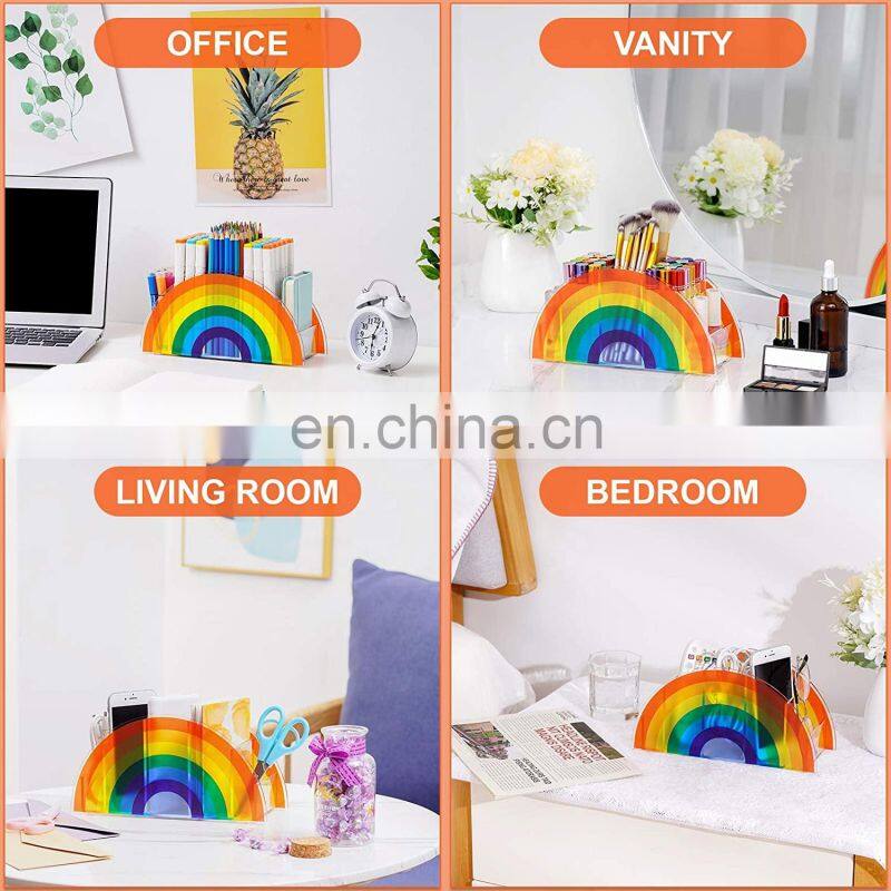Rainbow Acrylic Pen Holder 5 Compartments Desk Pen Organizer for School Home