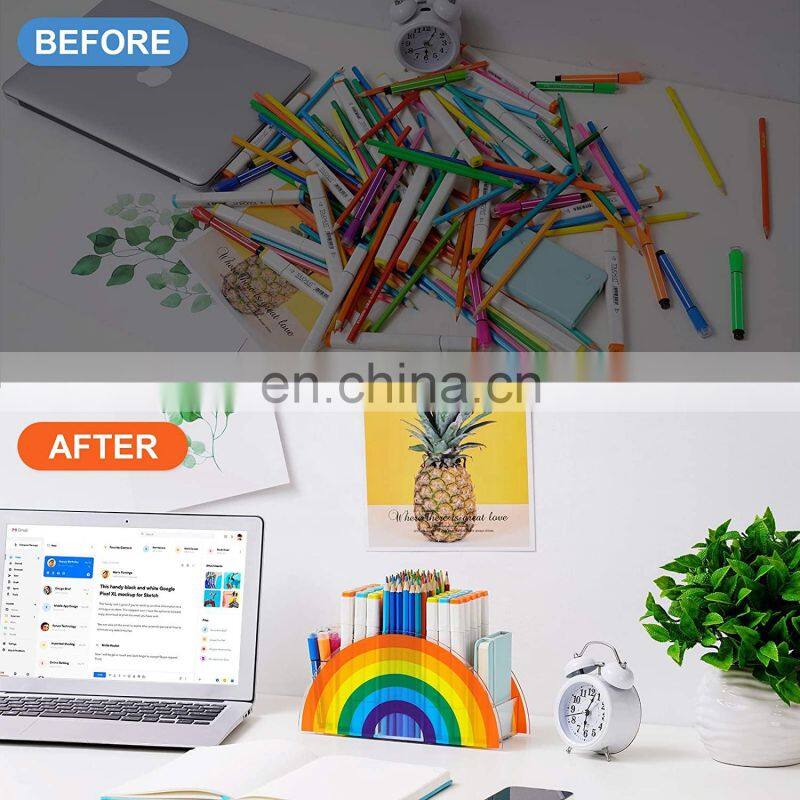 * 【Wide Application】: Suitable for the desktop of office, school, living room, bedroom, etc. Excellent to organize pens, crayons, makeup brushes, cellphones, and more. Cheerful rainbow color helps your desk more colorful and shiny.