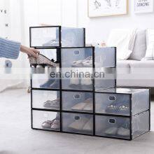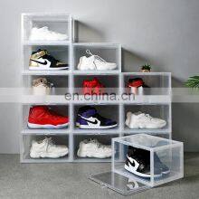 Popular New Wholesale Custom Large Mens Clear Drop Front Door Open Stack Cabinet Storage Hard Plastic Plain Shoe Box Organizer