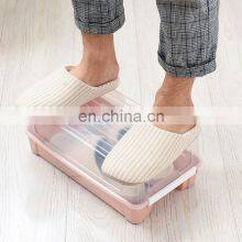 Clear View Dustproof Waterproof Stackable Sliding Front Open pp Transparent Shoe Storage Box Plastic Case With Wheels