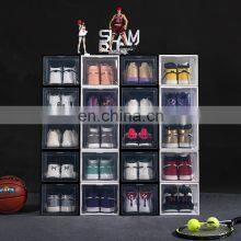 Transparent Basketball Shoes Collection Display Cabinet Pull Down Door Clear Shoe Box Plastic Stackable Sneaker Boxes For Men