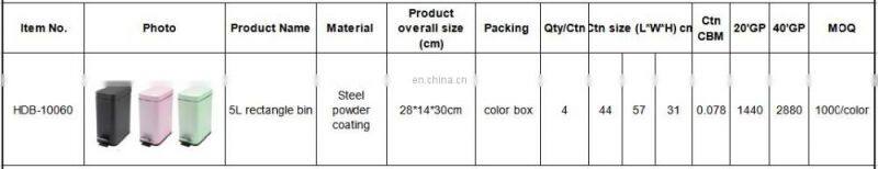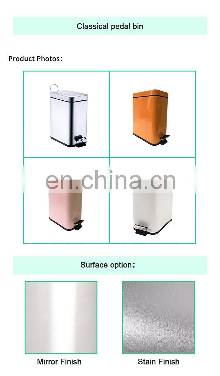 5L rose gold color decorative soft close rectangle foot pedal dustbin for hotel room |
