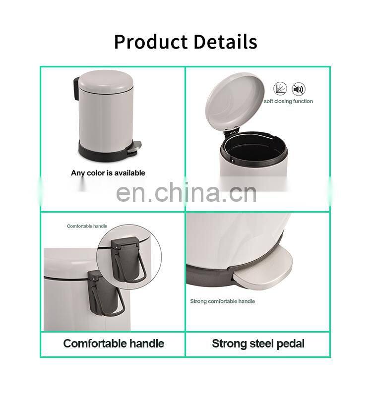 Hot selling round stainless steel trash can with soft closing 5L powder coating trash bin Large Comfortable pedal dustbin