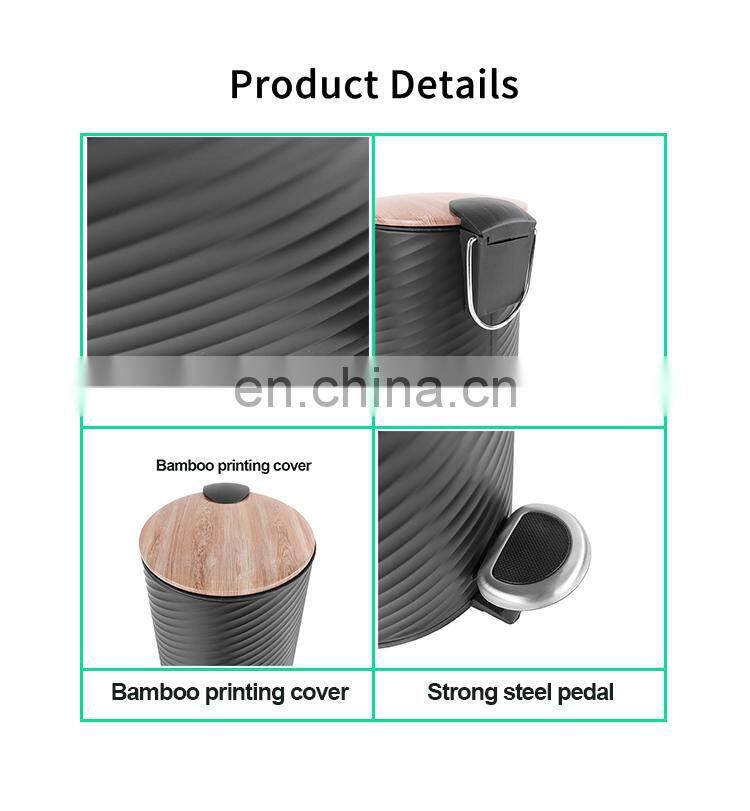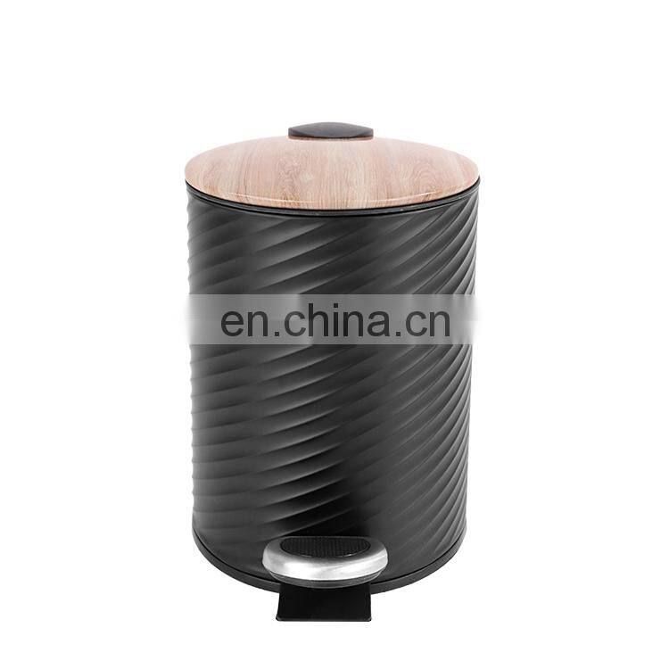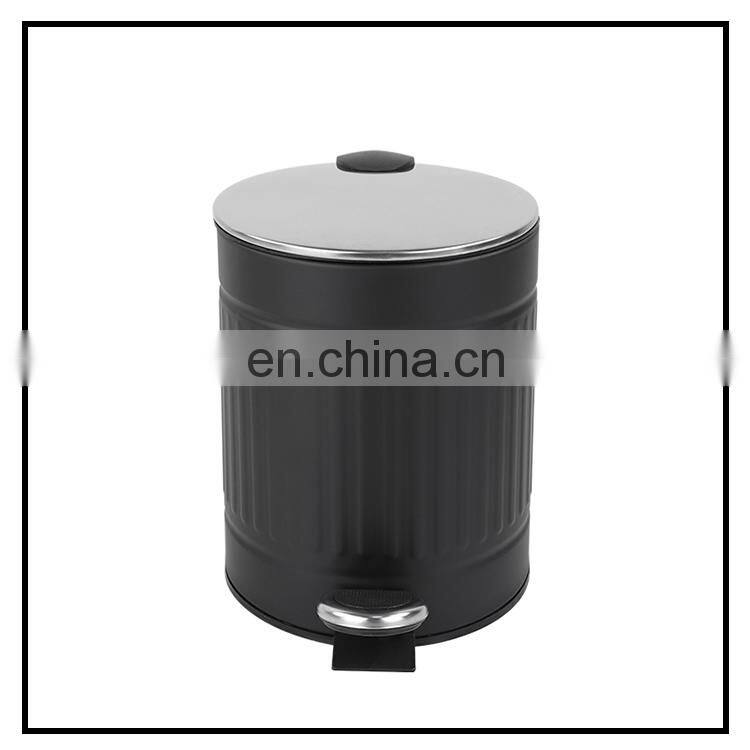 5 Liter Iron Powder Coating Pedal Bin Embossing Body Design Trash Can for Home Office and Kitchen Use Black Waste Bin